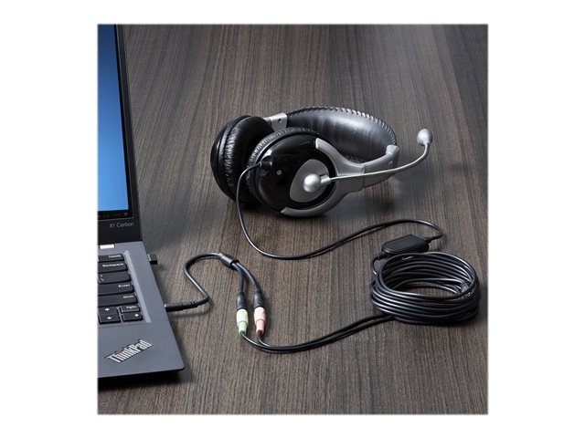Headset-delare - 4-poligt minijack hane till minijack hona - 20 cm - svart - för P/N: DK30A2DH, DK30CHDDPPD, DK30CHDPPDUE, MST30C2HDPPD, USB3SMDOCK4K, USB3VDOCKD