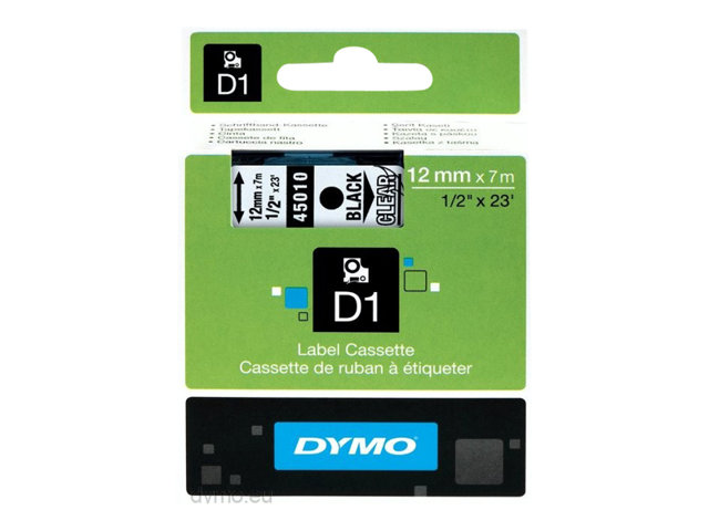 svart på transparent - Rulle (1,2 cm x 7 m) 1 kassett(er) etiketttejp - för LabelMANAGER 100, 160, 210, 220, 260, 280, 300, 360, 420, Wireless PnP; LabelPOINT 250